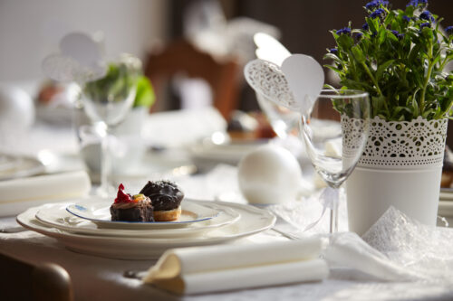 Místo drahých dekorací si připravte věci, které svatbu udělají osobní: vlastnoručně psané jmenovky, rodinné fotografie, které použijete na výzdobu, domácí koláčky na sladký bar nebo společné aktivity s hosty. Pobyt na zámku je totiž ideální k tomu, abyste si svatbu užili v klidu a věnovali se tomu podstatnému – společným chvílím s vašimi nejbližšími.